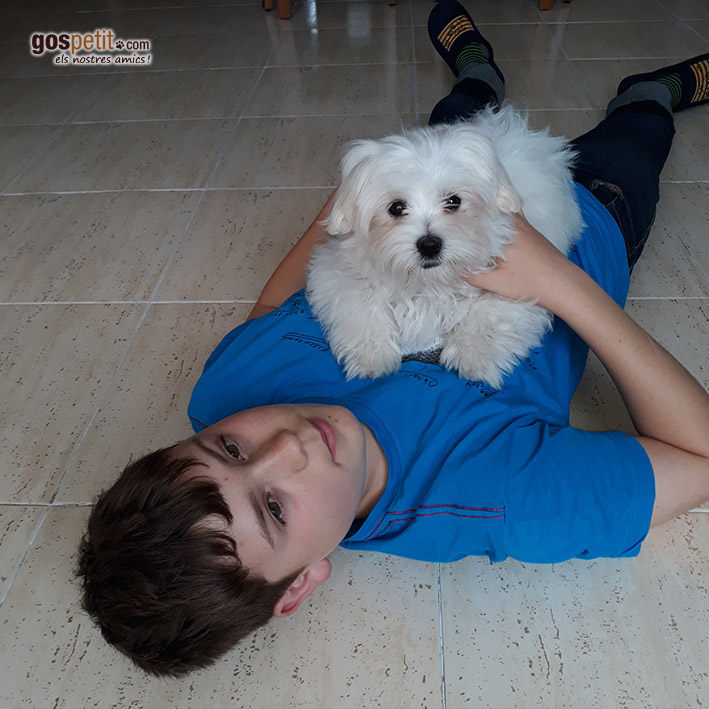 Aprén molt ràpid, es molt carinyós, molt alegre, i una mica 'trasto'...